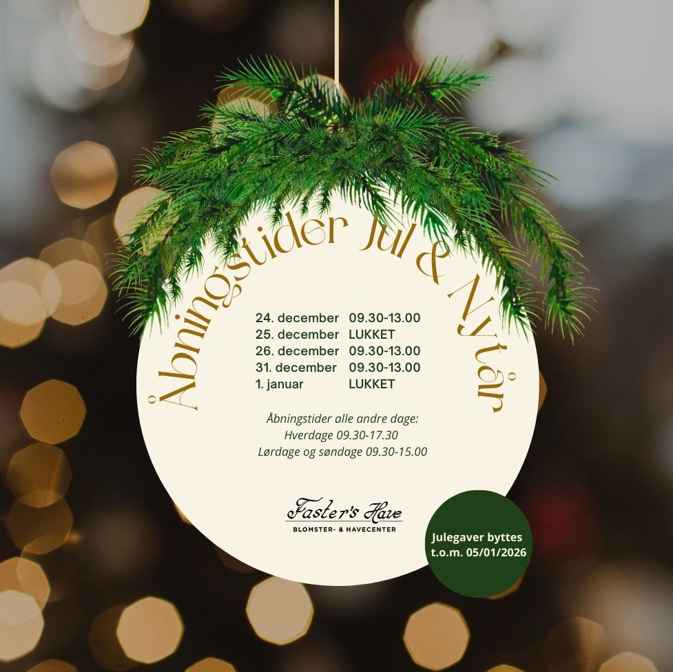 Faster’s Have i Frederikssund er et spændende og inspirerende havecenter, som altid knokler for at give vores kunder en fantastisk oplevelse. Vores havecenter skal være et rart sted at være, og vi har derfor indrettet os i en hyggelig og inspirerende atmosfære.