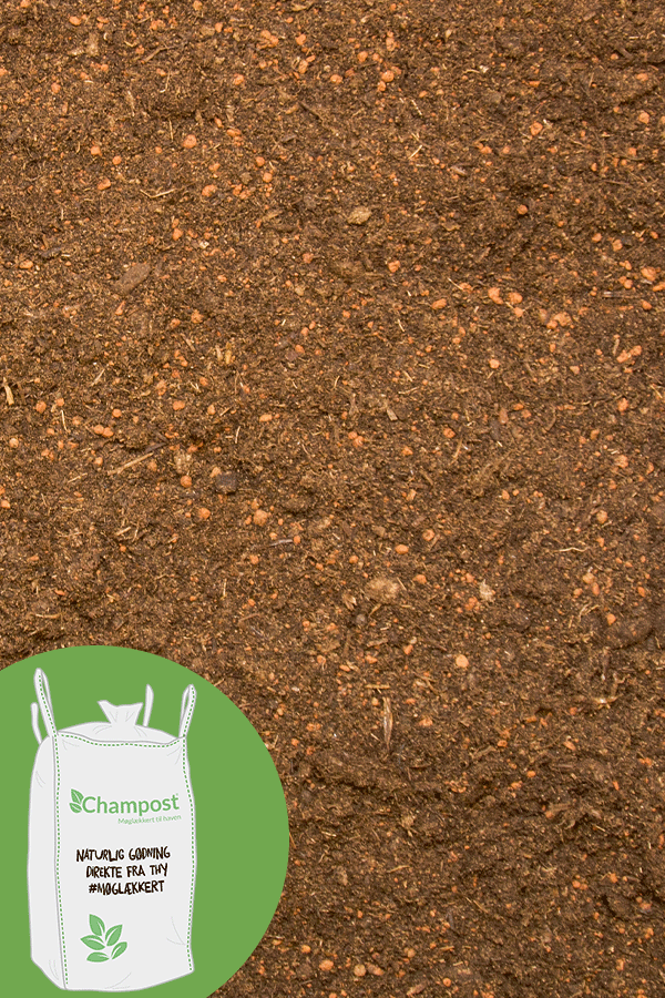 Når du anvender Champost Planteskolejord slipper du for at tilføre yderligere gødning. Komposten er rig på naturlige næringsstoffer og godkendt til økologisk dyrkning.* Det betyder, at vi garanterer dig et miljøvenligt produkt, som er 100 % fri for kunstgødning.